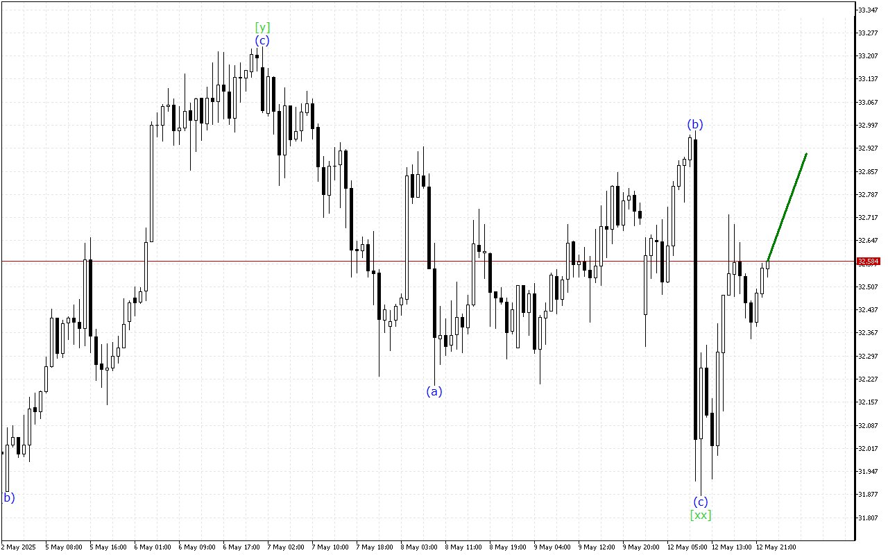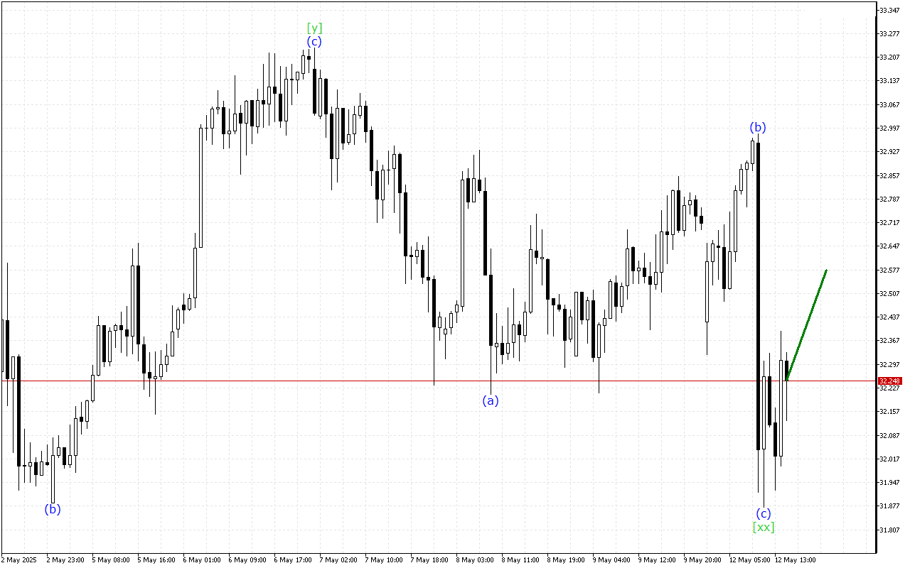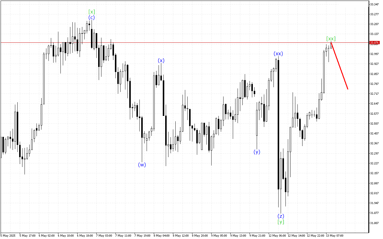 XAGUSD H1: Хвильовий аналіз для Європейської сесії 13.5.2025