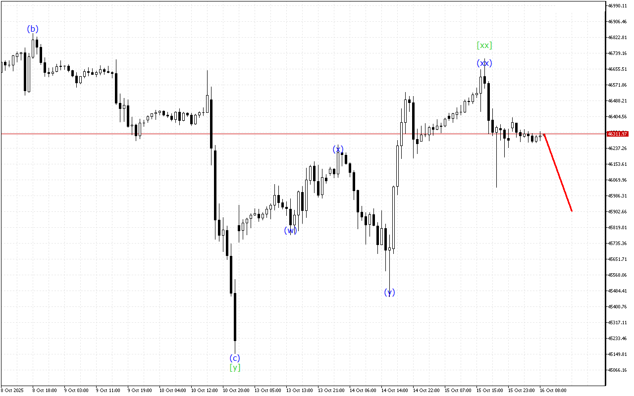 Dow Jones H1: Хвильовий аналіз для Європейської сесії 16.10.2025