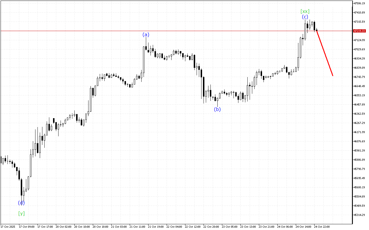 Таким чином, на графіку Dow Jones продовжує формуватися висхідний рух, але цей імпульс знаходиться на завершальній стадії формування, тому ціна може відновити рух вниз.