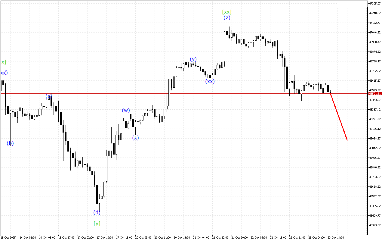 Таким чином, на графіку Dow Jones продовжує формуватися висхідний рух, але цей імпульс знаходиться на завершальній стадії формування, тому ціна може відновити рух вниз.