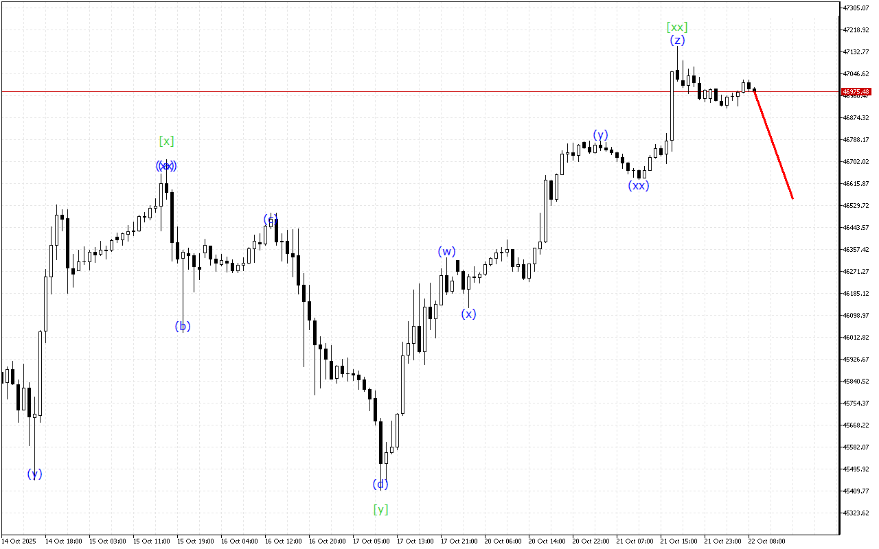 Сучасна динаміка руху свідчить про формування потрійної трійки. На даний момент сформована хвиля [xx]. Після його формування очікується розвиток спадної хвилі [z].