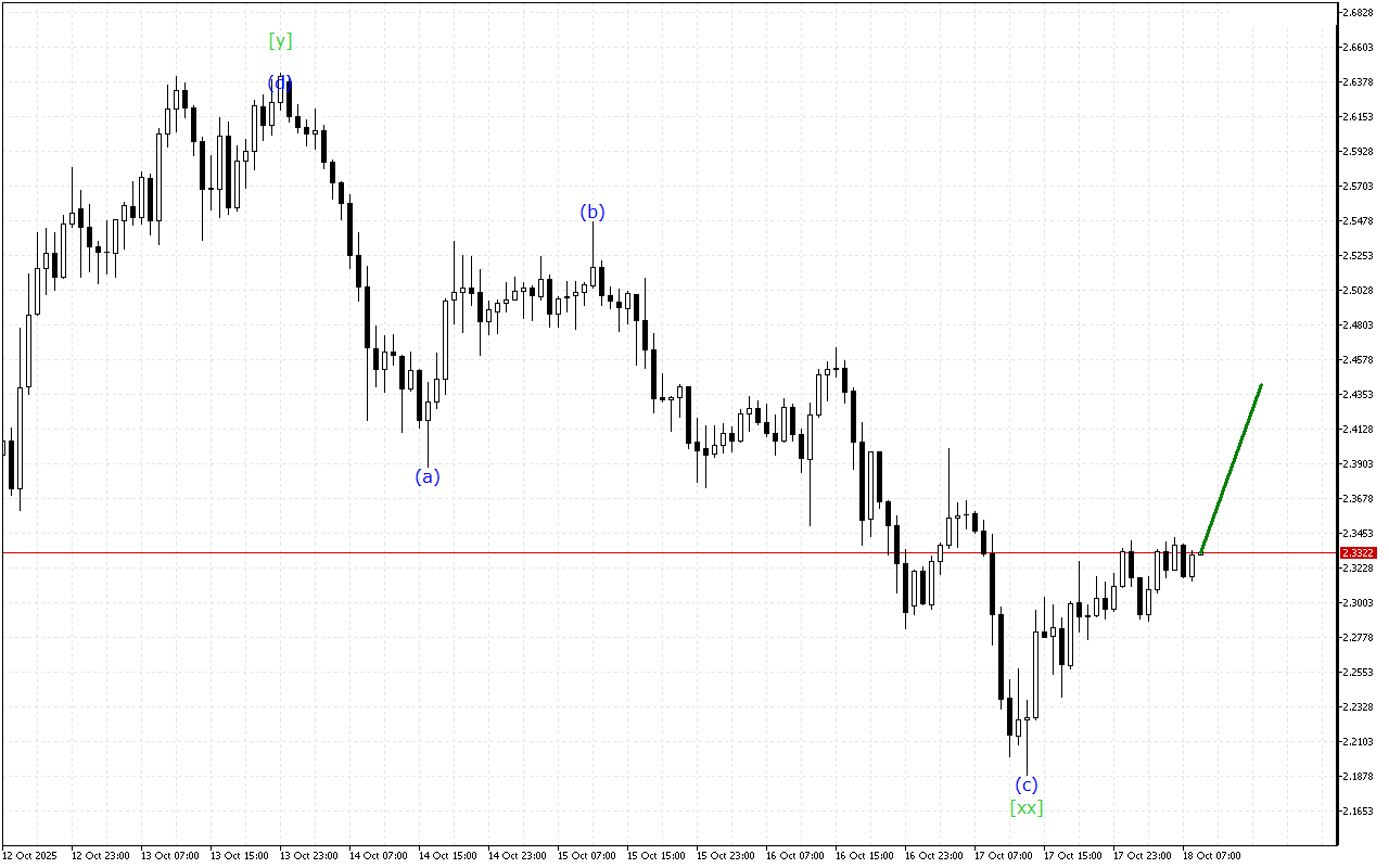 Ripple продовжує рухатися в структурі хвилі “Потрійної Трійки“. Зараз, мабуть, на графіку завершилося формування хвилі [xx] і можна очікувати розвитку висхідного руху з хвилею [z].