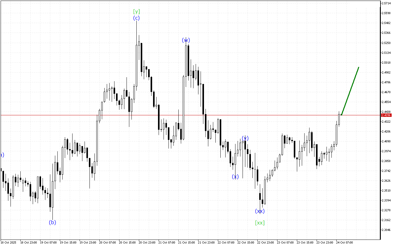 Ripple продовжує рухатися в структурі хвилі “Потрійної Трійки“. Зараз, мабуть, на графіку завершилося формування хвилі [xx] і можна очікувати розвитку висхідного руху з хвилею [z].