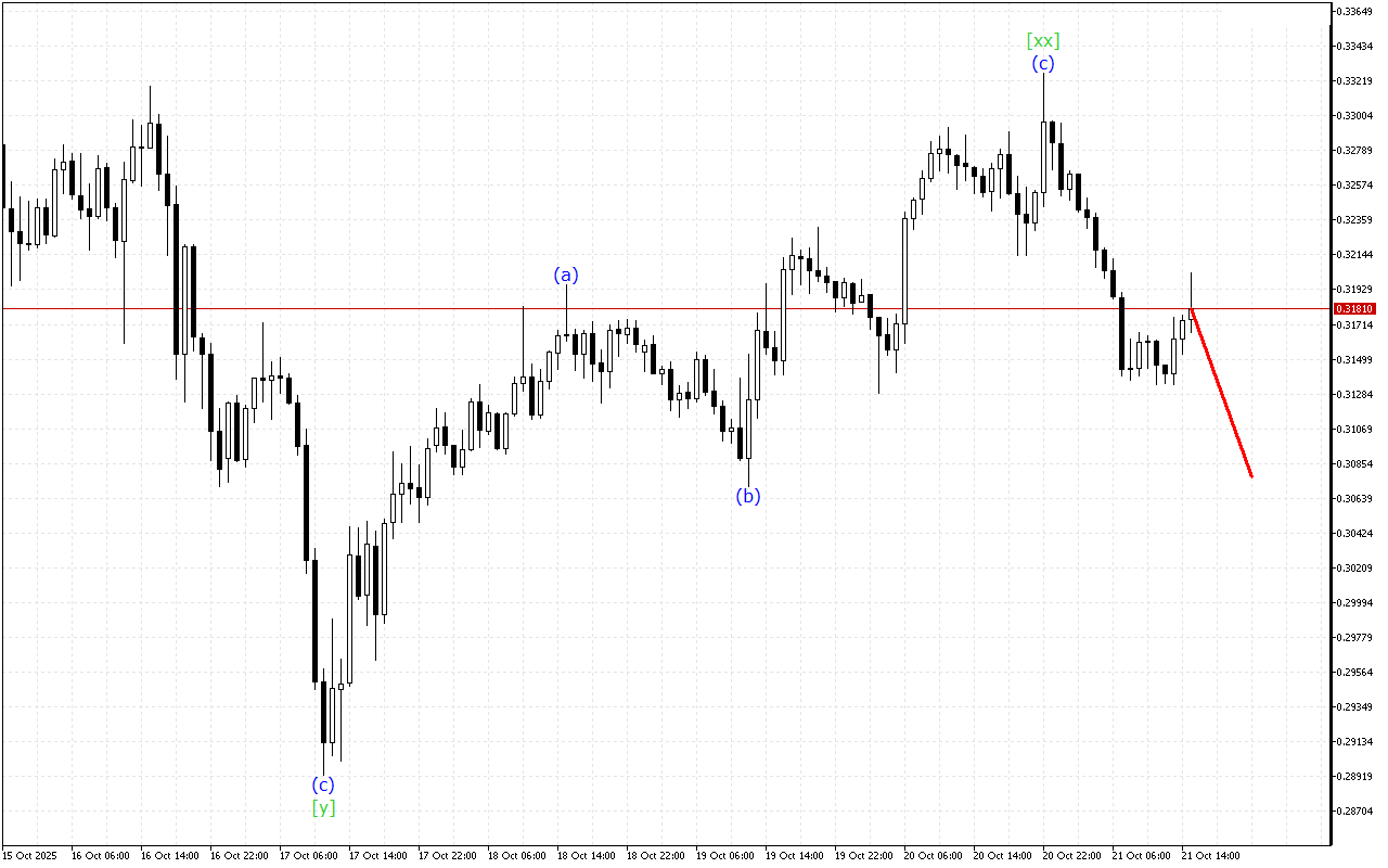 Сучасна динаміка руху свідчить про формування потрійної трійки. На даний момент сформована хвиля [xx]. Після його формування очікується розвиток спадної хвилі [z].