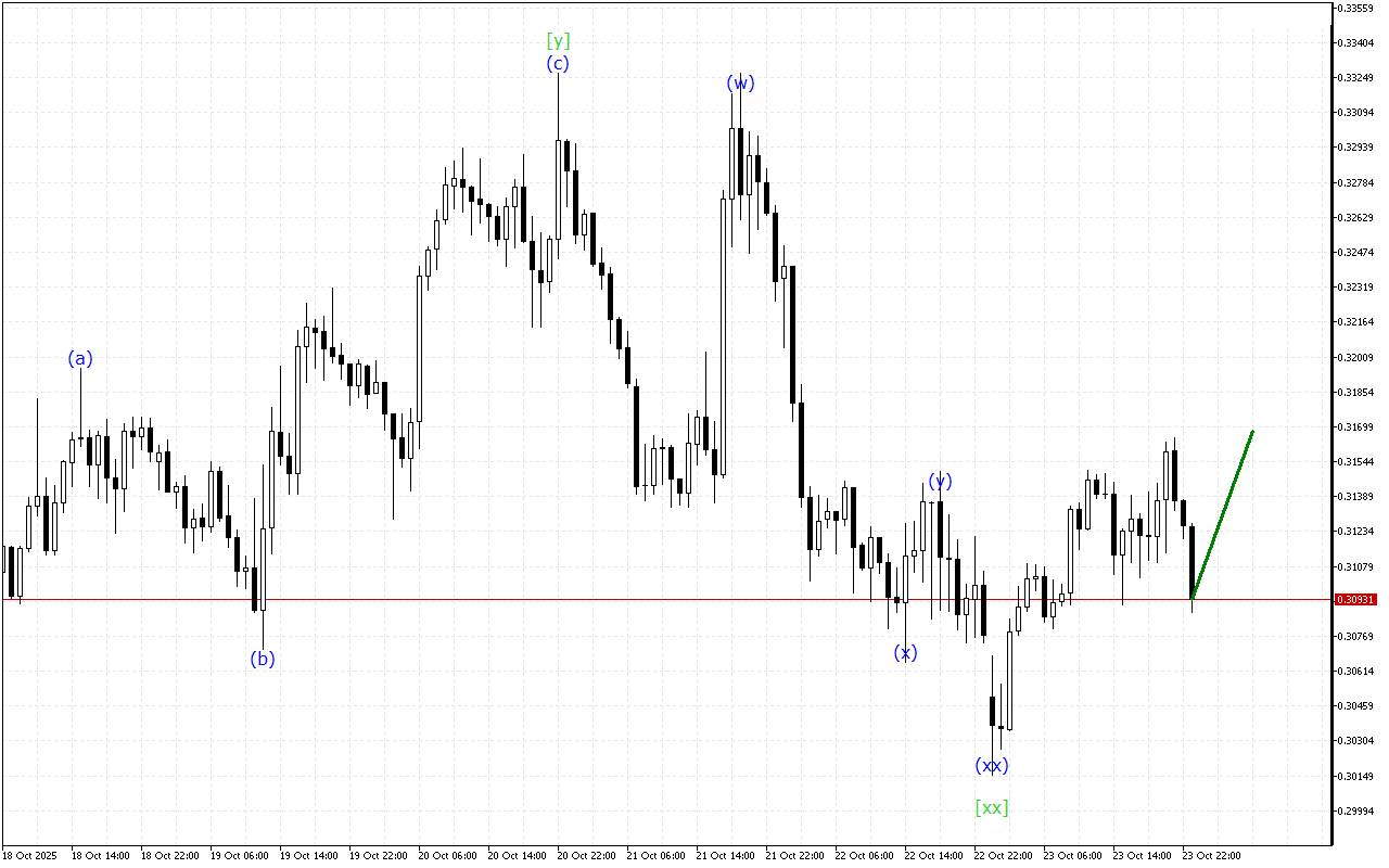 На нижчому ступені структури хвилі видно розвиток потрійної трійки, де завершилося формування хвилі (z).