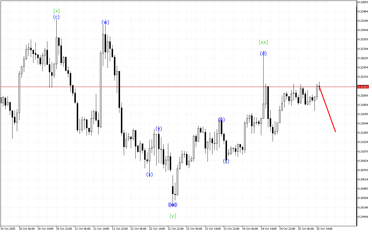Сучасна динаміка руху свідчить про формування потрійної трійки. На даний момент сформована хвиля [xx]. Після його формування очікується розвиток спадної хвилі [z].