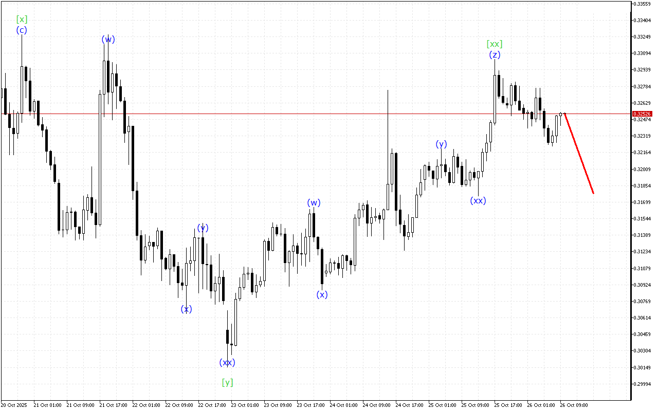 У хвильовій структурі нижчого ступеня спостерігається розвиток потрійної трійки. У цій структурі завершується формування хвилі (z). На цьому тлі очікується завершення корекції і початок більш спрямованого руху.