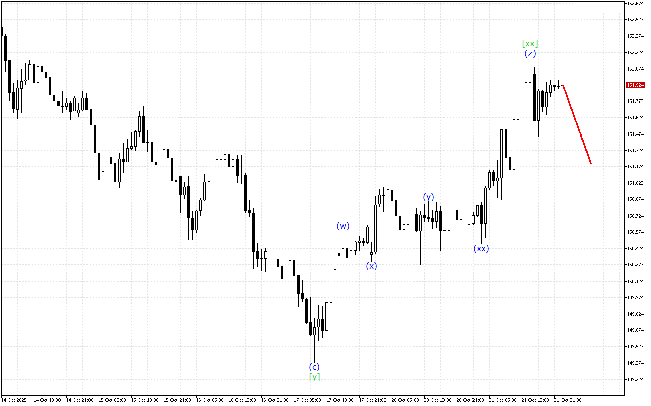 У хвильовій структурі нижчого ступеня спостерігається розвиток потрійної трійки. У цій структурі завершується формування хвилі (z). На цьому тлі очікується завершення корекції і початок більш спрямованого руху.