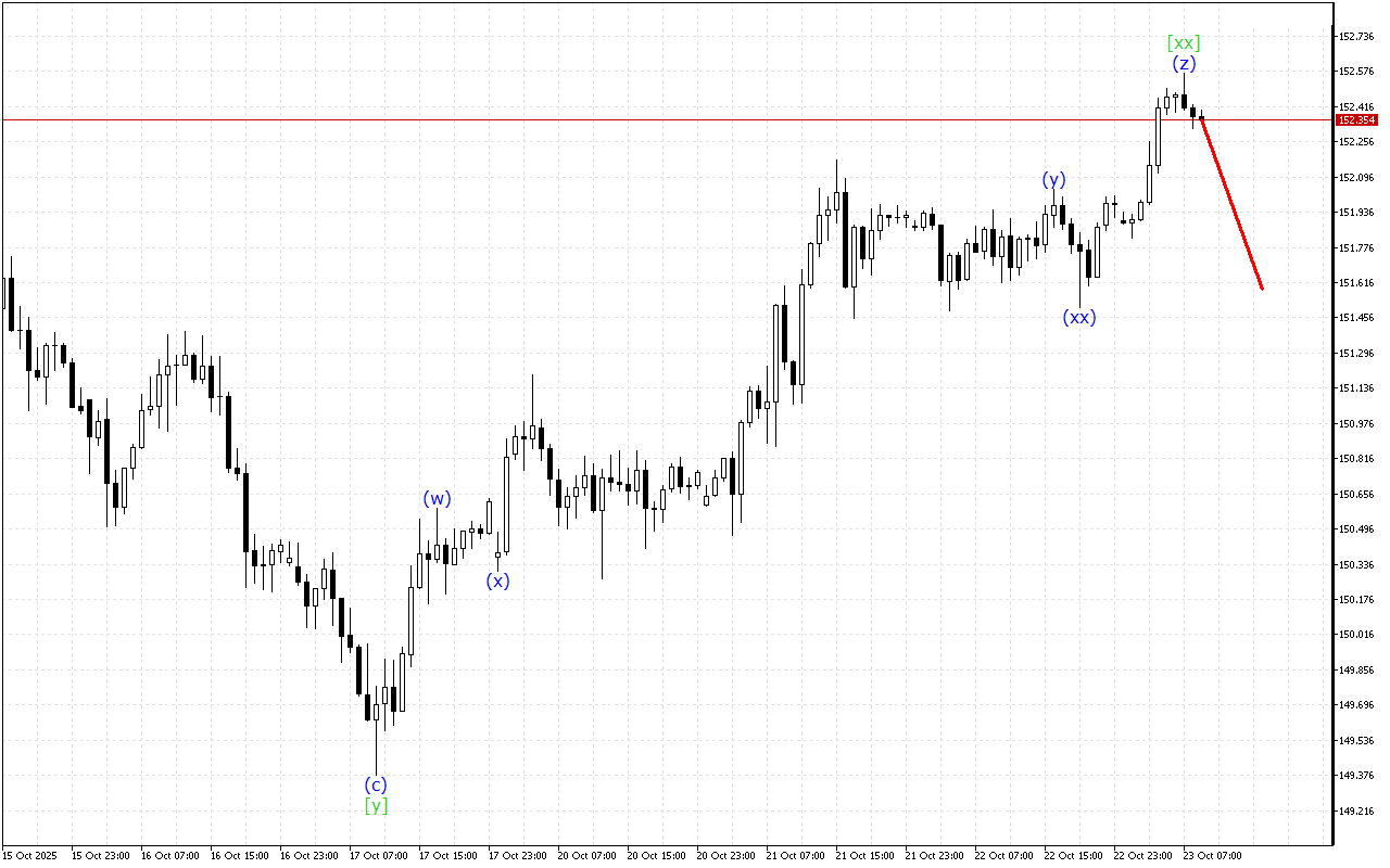 При хвильовій структурі нижчого ступеня відзначається утворення потрійної трійки. Зараз ціна знаходиться в хвилі (z), яка завершує це формування. Очікується, що найближчим часом ця хвиля закінчиться. Після цього поточна цінова тенденція може змінитися.