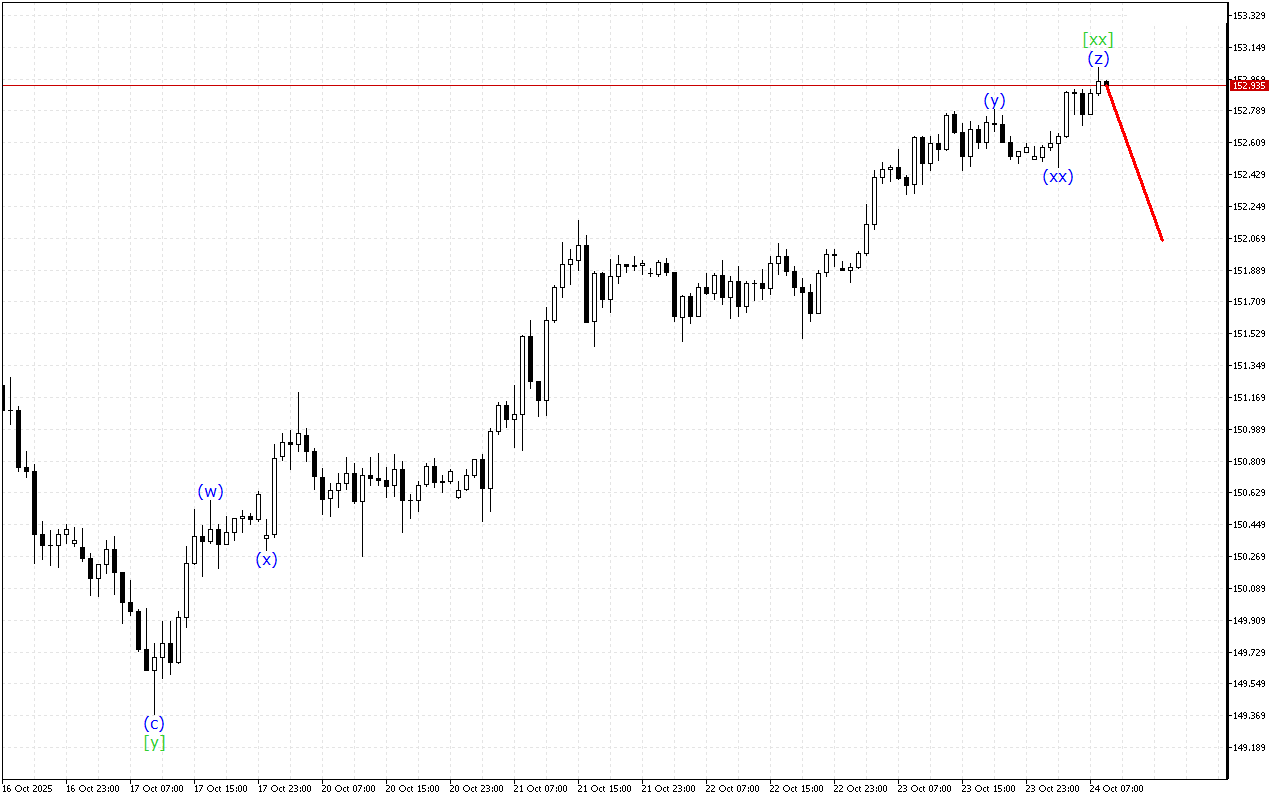 У хвильовій структурі нижчого ступеня спостерігається розвиток потрійної трійки. У цій структурі завершується формування хвилі (z). На цьому тлі очікується завершення корекції і початок більш спрямованого руху.