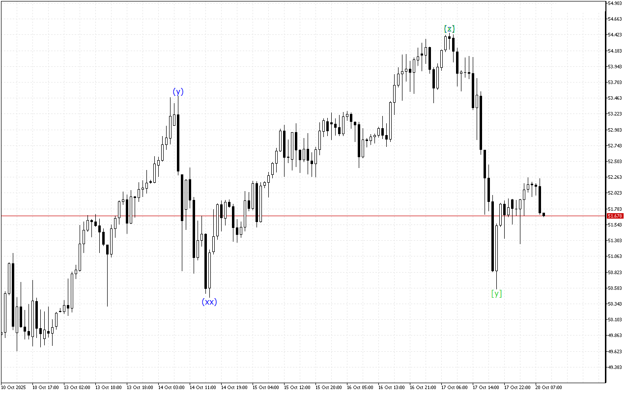 Аналіз структури вищої хвилі показує формування подвійної трійки WXY з розвитком кінцевої хвилі [y]. Після цього можна очікувати розвиток більш спрямованого руху ціни або формування більш складної п’ятихвильової структури.