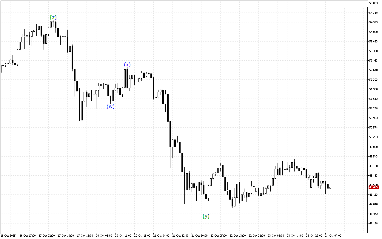 Поточна структура хвилі натякає на формування подвійної трійки WXY, де є кінцева хвиля [y].