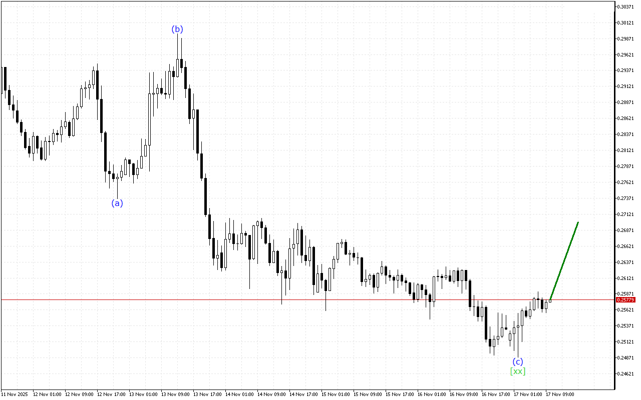 За меншим часовим масштабом ринок рухається в межах зигзага ABC. Зараз ціна, ймовірно, завершує формування хвилі (c), і рух ціни може перейти до формування нової хвилі.