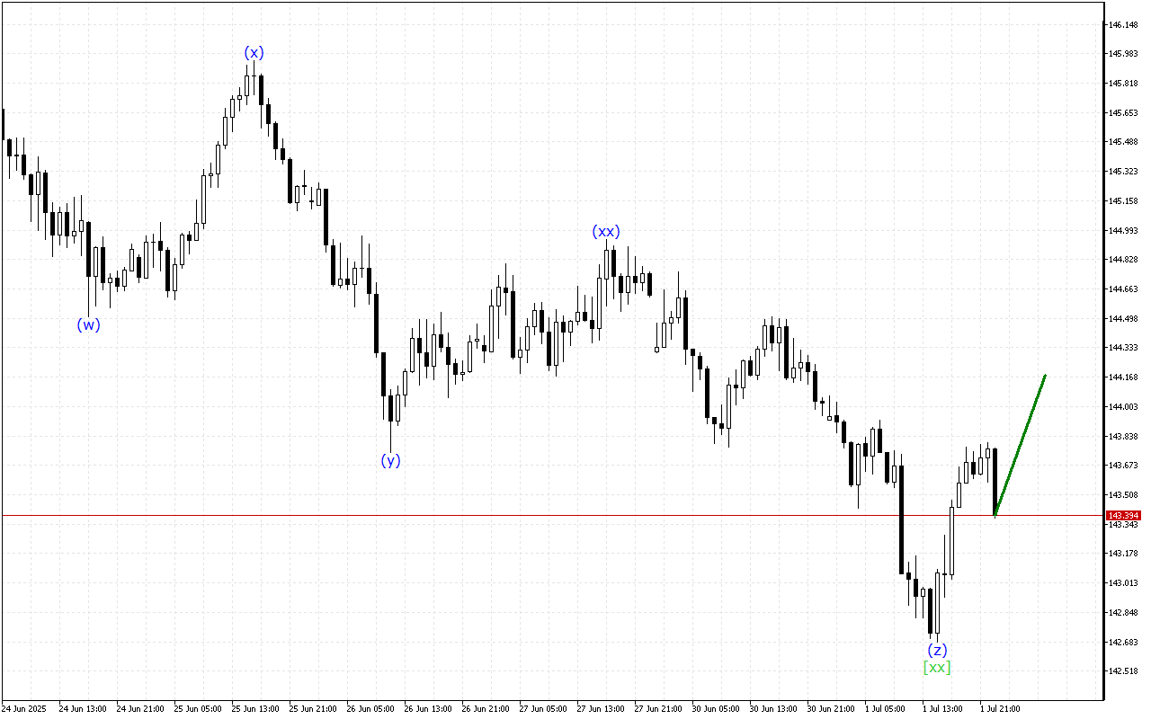 За меншим часовим масштабом ринок рухається в межах зигзага ABC. Зараз ціна, ймовірно, завершує формування хвилі (c), і рух ціни може перейти до формування нової хвилі.