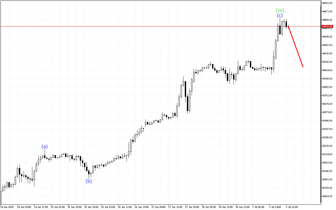 Підсумовуючи, на даний момент графік Dow Jones зберігає вектор руху вниз. Однак коригувальна хвиля знаходиться на завершальній стадії формування.