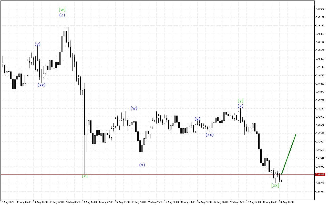 Сучасна динаміка руху свідчить про формування потрійної трійки. На даний момент сформована хвиля [xx]. Після його формування очікується розвиток спадної хвилі [z].