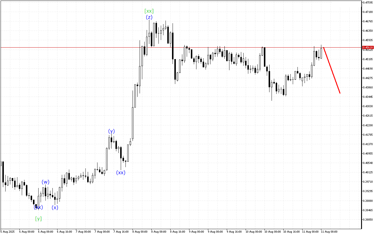 Сучасна динаміка руху свідчить про формування потрійної трійки. На даний момент сформована хвиля [xx]. Після його формування очікується розвиток спадної хвилі [z].