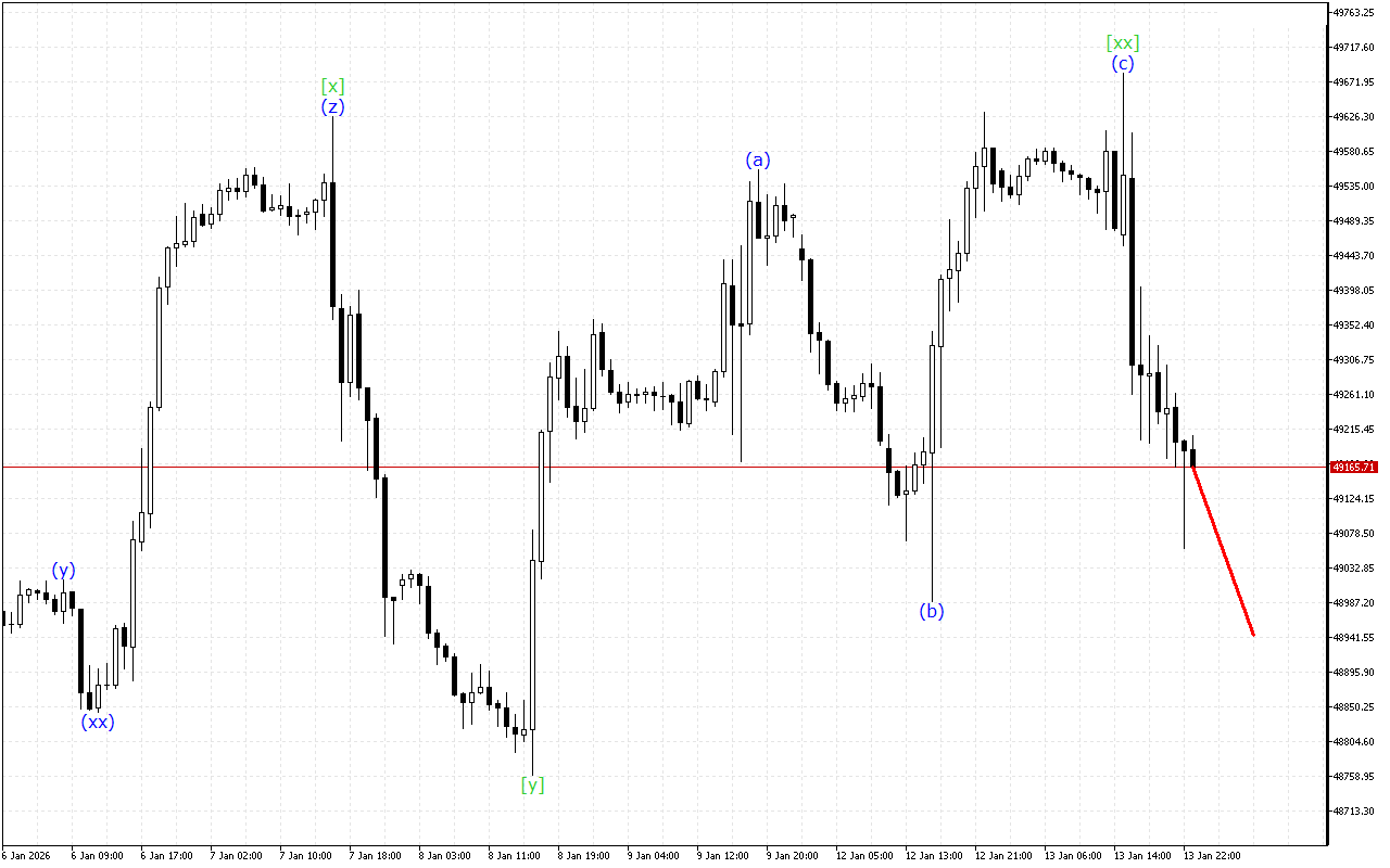 Відповідно до хвильової структури нижчого ступеня, Dow Jones зараз рухається в межах зигзага ABC. У цьому випадку ціна, швидше за все, завершує формування хвилі (с).