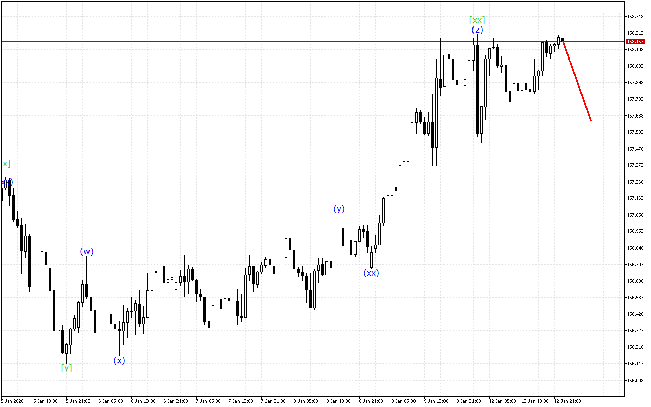 При хвильовій структурі нижчого ступеня відзначається утворення потрійної трійки. Зараз ціна знаходиться в хвилі (z), яка завершує це формування. Очікується, що найближчим часом ця хвиля закінчиться. Після цього поточна цінова тенденція може змінитися.