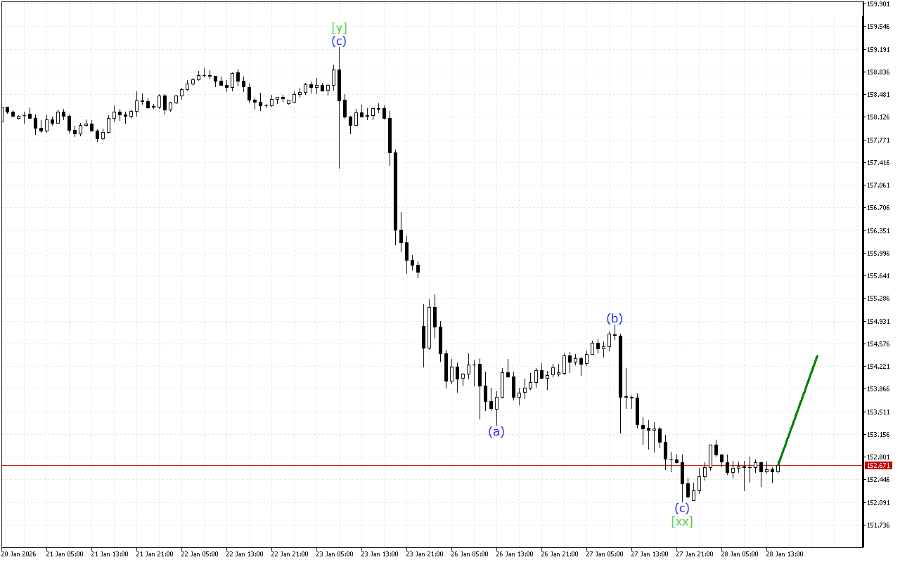 USDJPY продовжує рухатися в структурі хвилі “Потрійної Трійки“. Зараз, мабуть, на графіку завершилося формування хвилі [xx] і можна очікувати розвитку висхідного руху з хвилею [z].