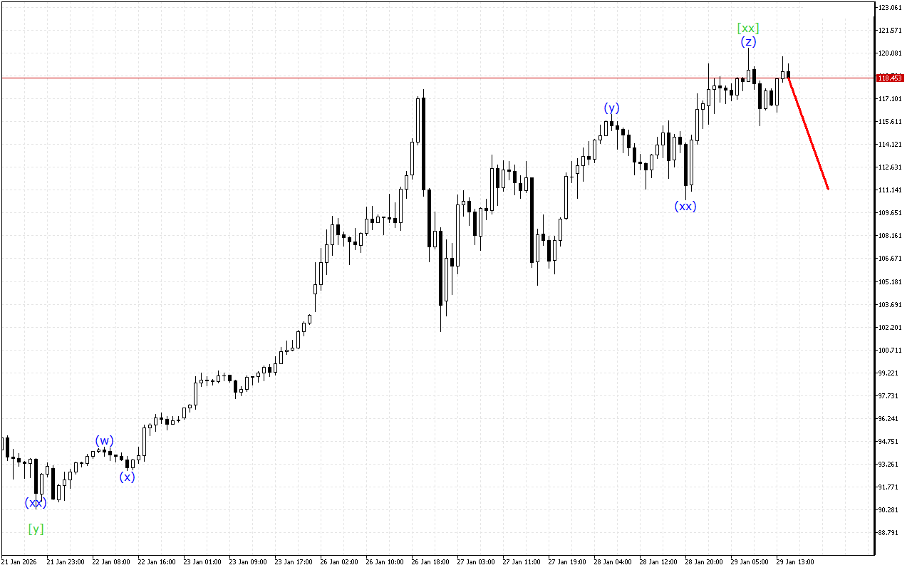 У хвильовій структурі нижчого ступеня спостерігається розвиток потрійної трійки. У цій структурі завершується формування хвилі (z). На цьому тлі очікується завершення корекції і початок більш спрямованого руху.