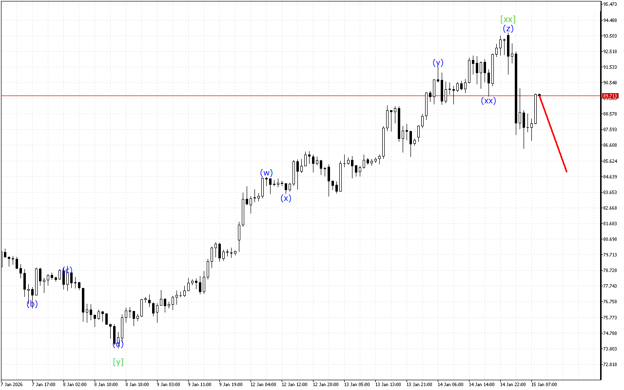 Існує розвиток потрійної трихвильової структури на більш високому таймфрейме. Наразі сформована хвиля [xx]. Після цього ціна повинна відновити рух вниз.