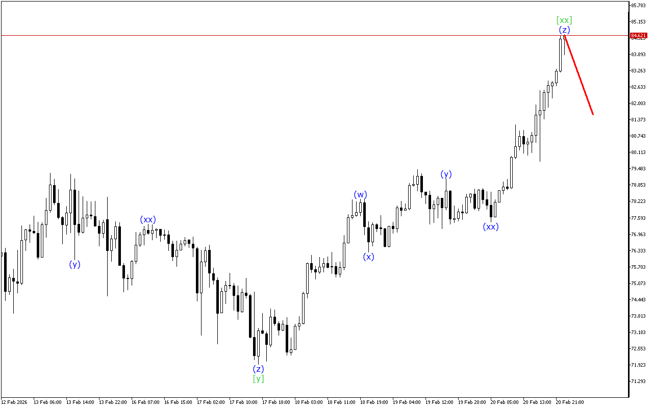 XAGUSD H1: Хвильовий аналіз для американської сесії 20.2.2026