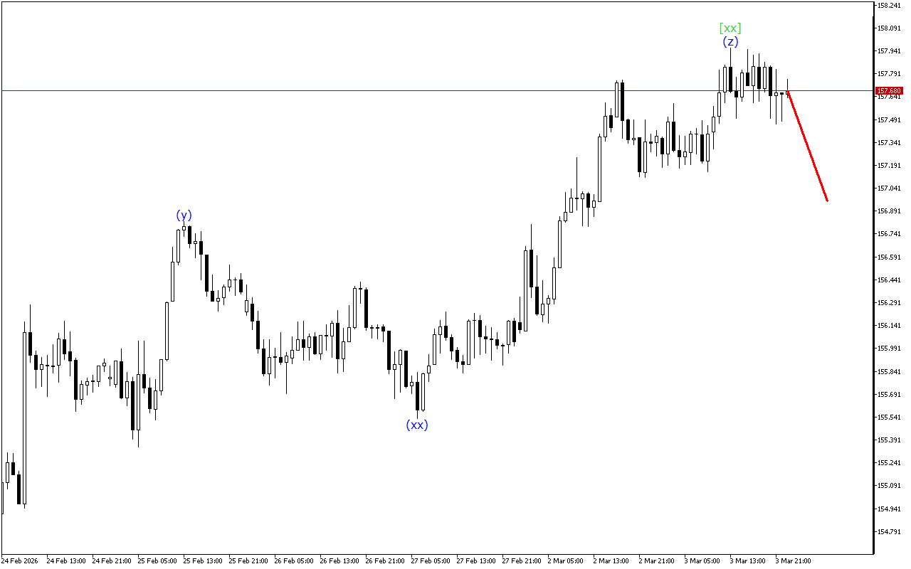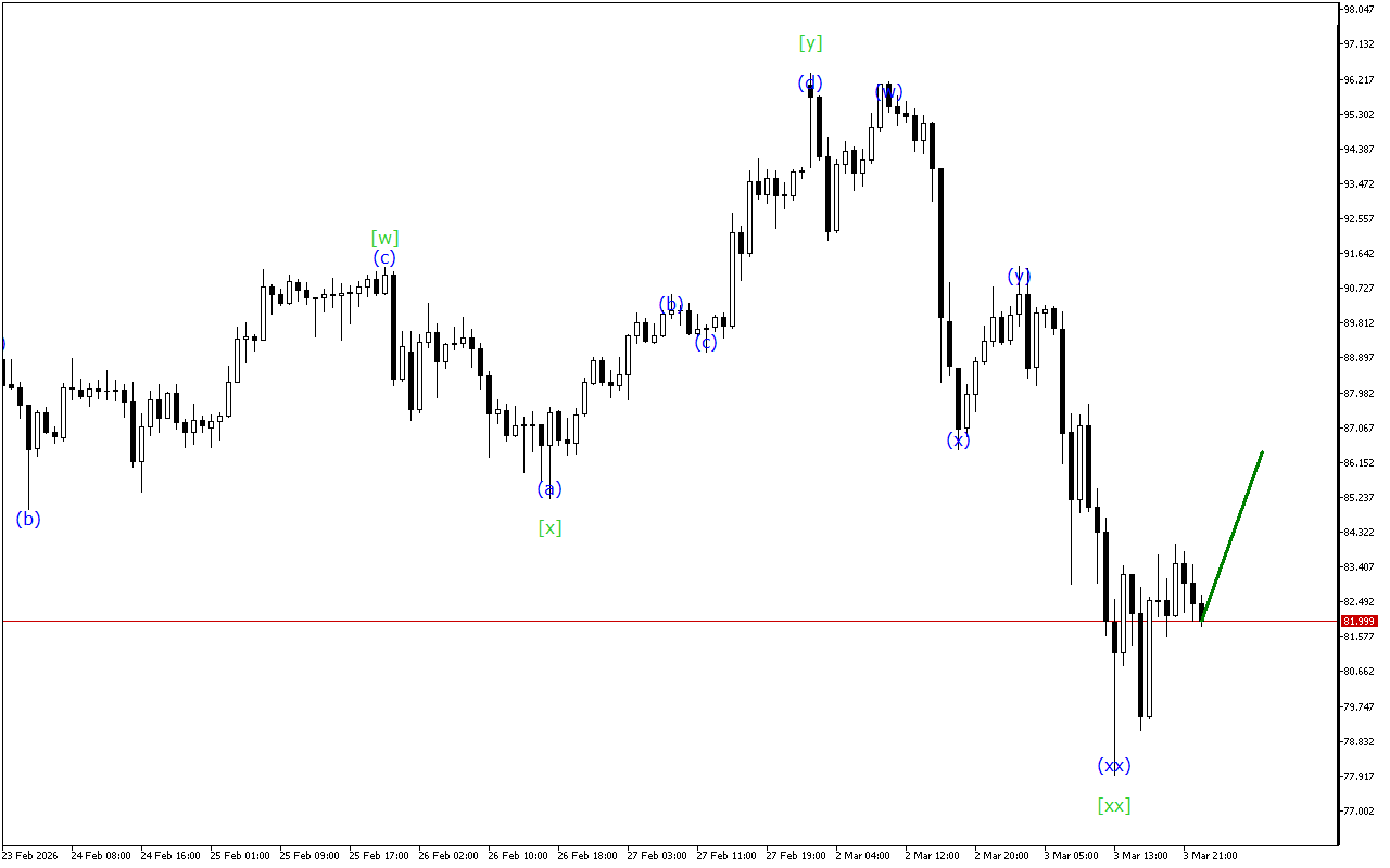 При хвильовій структурі нижчого ступеня відзначається утворення потрійної трійки. Зараз ціна знаходиться в хвилі (z), яка завершує це формування. Очікується, що найближчим часом ця хвиля закінчиться. Після цього поточна цінова тенденція може змінитися.