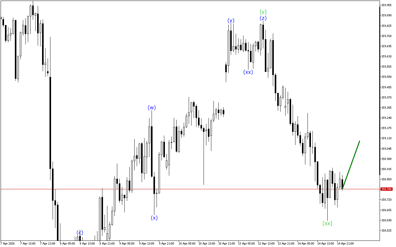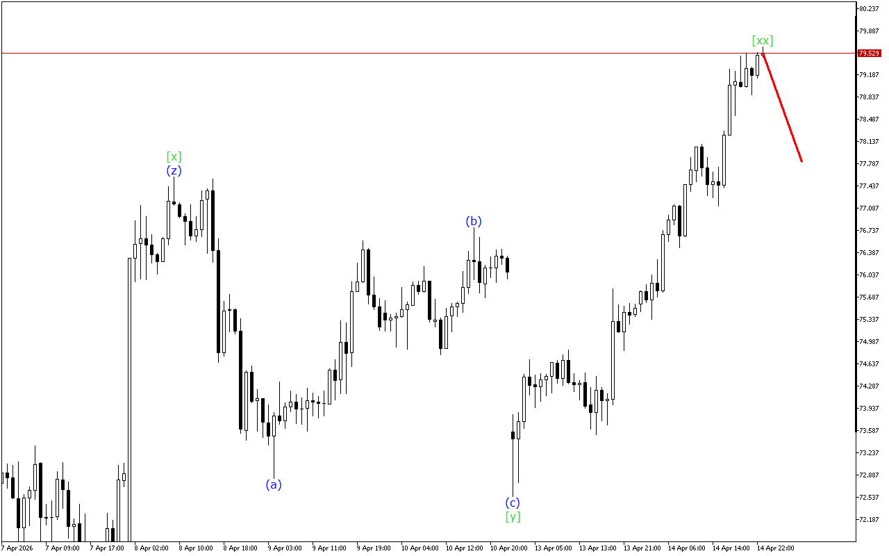 При хвильовій структурі нижчого ступеня відзначається утворення потрійної трійки. Зараз ціна знаходиться в хвилі (z), яка завершує це формування. Очікується, що найближчим часом ця хвиля закінчиться. Після цього поточна цінова тенденція може змінитися.