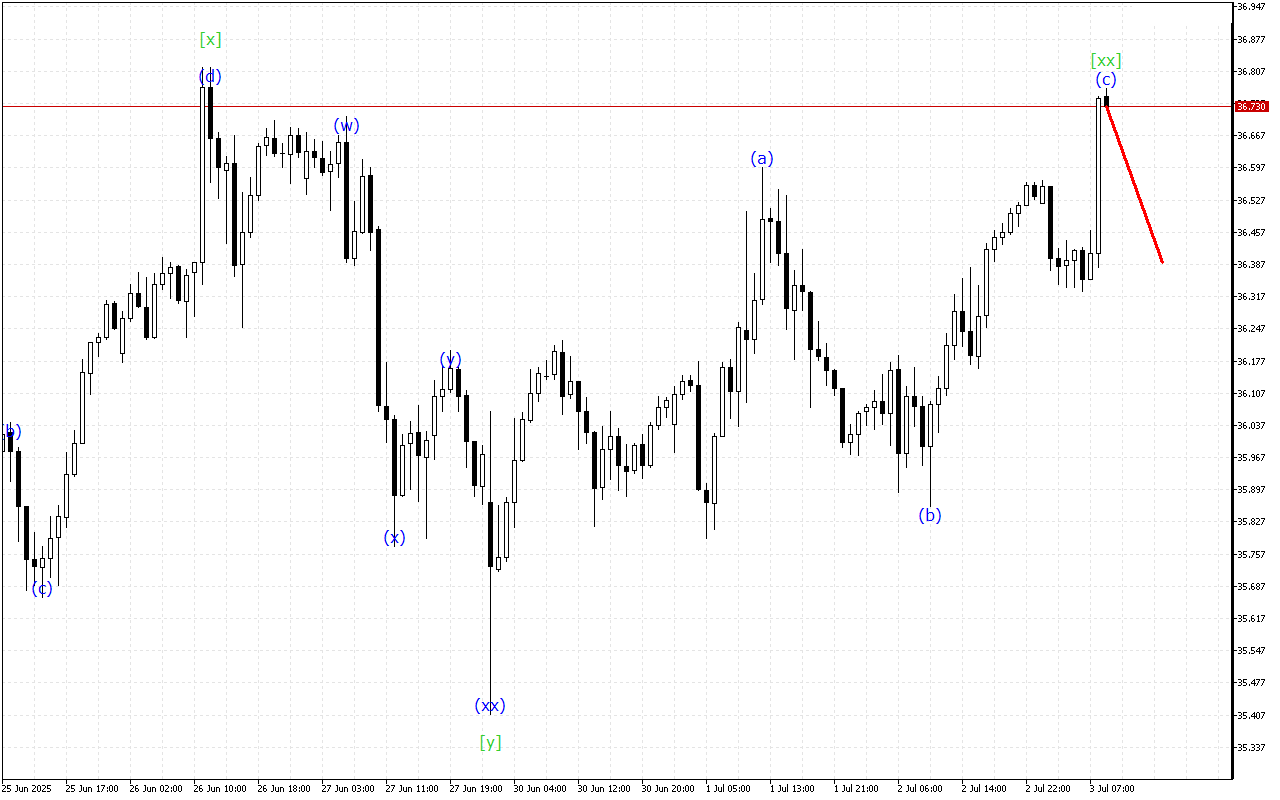 XAGUSD H1: Ανάλυση κυμάτων για την ασιατική συνεδρίαση στις 4.7.2025
