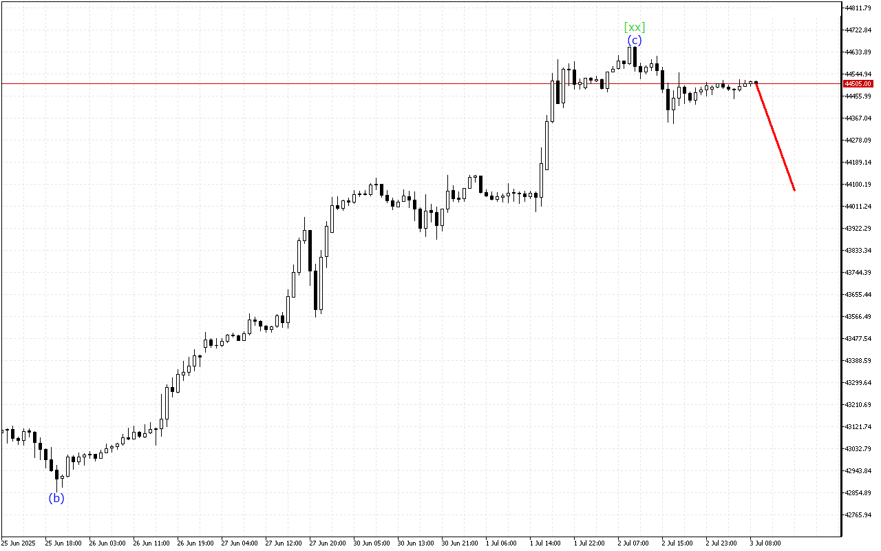 Dow Jones H1: Wave Analysis για την Αμερικανική Συνεδρίαση στις 3.7.2025