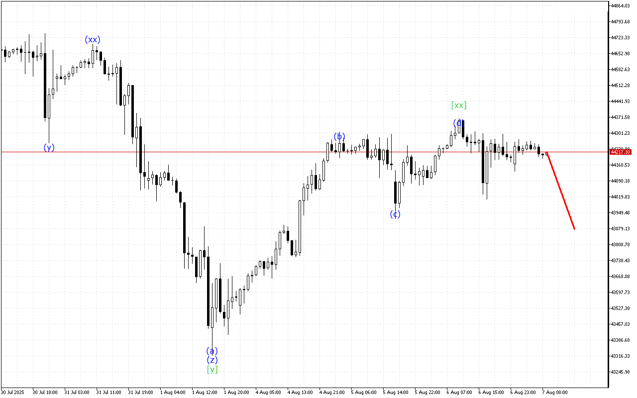 Το Dow Jones συνεχίζει να κινείται εντός της κυματικής δομής Triple Three. Τώρα, προφανώς, ο σχηματισμός του κύματος [xx] έχει ολοκληρωθεί στο γράφημα και η ανάπτυξη μιας ανοδικής κίνησης μπορεί να αναμένεται με το κύμα [z].
