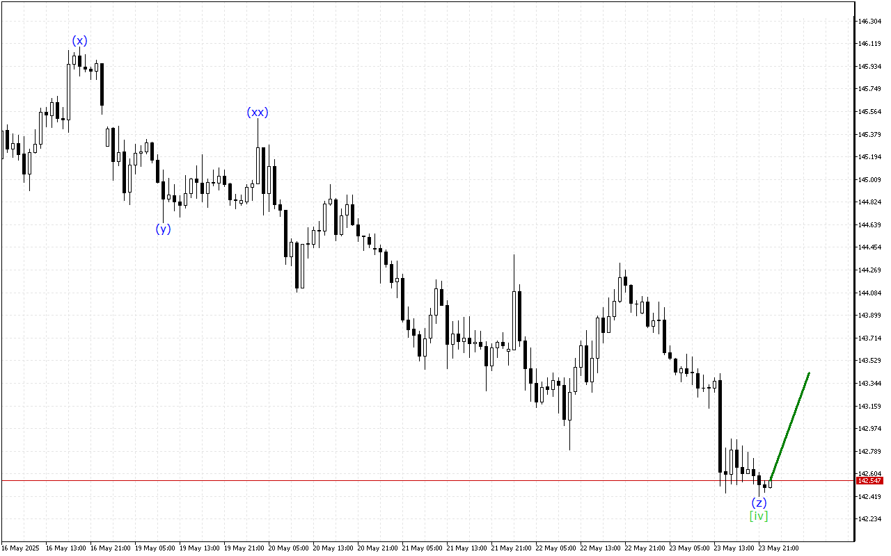 Τα κύματα χαμηλότερου χρονικού πλαισίου σχηματίζουν ένα τριπλό τριάρι. Η τιμή αυτή τη στιγμή βρίσκεται στο κύμα (z). Όταν ολοκληρωθεί αυτό το κύμα, αναμένεται μια πιο κατευθυντική κίνηση των τιμών.