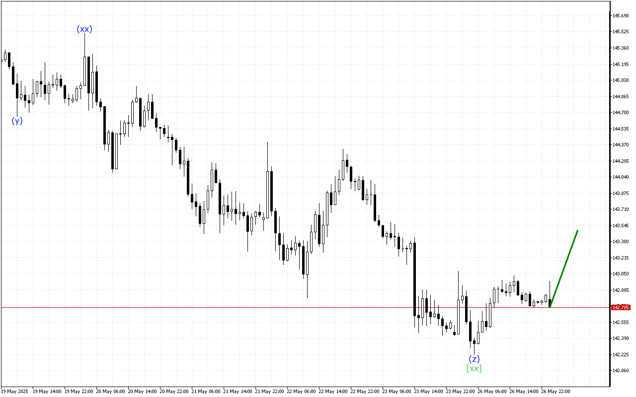 Το μεσοπρόθεσμο διάνυσμα κίνησης του USDJPY υποδηλώνει το σχηματισμό μιας δομής κυμάτων τριπλών τριαριών. Τώρα ο σχηματισμός του κύματος [xx] έχει ολοκληρωθεί και αναμένεται η έναρξη μιας ανοδικής κίνησης εντός του κύματος [z].