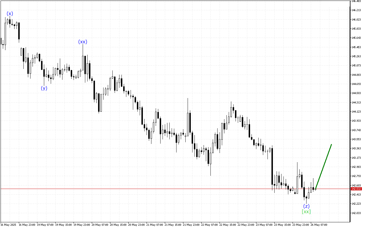 Το USDJPY συνεχίζει να κινείται εντός της κυματικής δομής Triple Three. Τώρα, προφανώς, ο σχηματισμός του κύματος [xx] έχει ολοκληρωθεί στο γράφημα και η ανάπτυξη μιας ανοδικής κίνησης μπορεί να αναμένεται με το κύμα [z].
