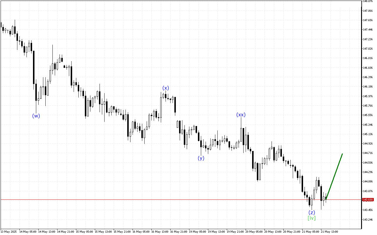 Η κυματική δομή υψηλότερου βαθμού μοιάζει με ανερχόμενη σφήνα. Μέσα σε αυτή τη δομή των πέντε κυμάτων, ο σχηματισμός του κύματος [iv] ολοκληρώνεται τώρα. Μόλις διαμορφωθεί, η αγορά μπορεί να αρχίσει να αναπτύσσεται ξανά.