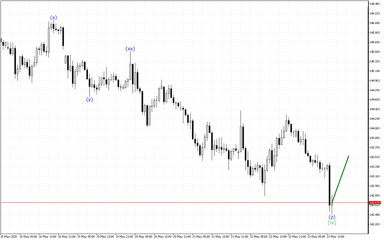 Η κυματική δομή υψηλότερου βαθμού μοιάζει με ανερχόμενη σφήνα. Μέσα σε αυτή τη δομή των πέντε κυμάτων, ο σχηματισμός του κύματος [iv] ολοκληρώνεται τώρα. Μόλις διαμορφωθεί, η αγορά μπορεί να αρχίσει να αναπτύσσεται ξανά.