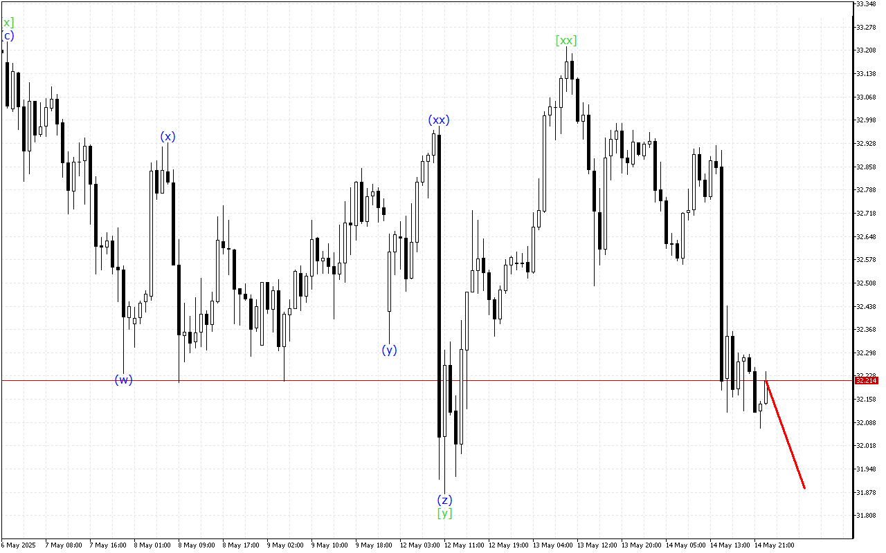 Έτσι, μια ανοδική κίνηση συνεχίζει να σχηματίζεται στο γράφημα XAGUSD, αλλά αυτή η ώθηση βρίσκεται στο τελικό στάδιο σχηματισμού, οπότε η τιμή μπορεί να συνεχίσει μια πτωτική κίνηση.