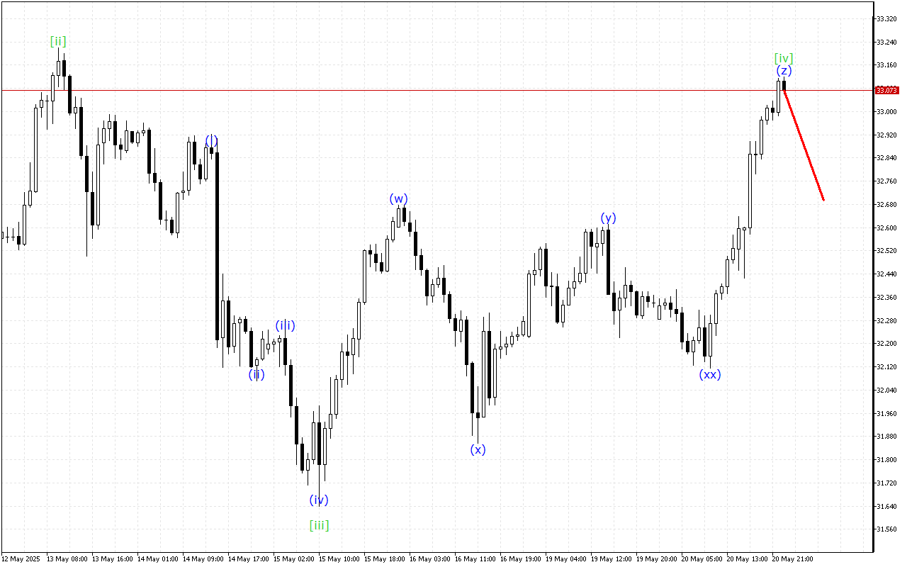 Μέσα σε μια κυματική δομή χαμηλότερου βαθμού, σημειώνεται η ανάπτυξη ενός τριπλού τριαριών. Ο σχηματισμός του κύματος (z) ολοκληρώνεται σε αυτή τη δομή. Σε αυτό το φόντο αναμένεται η ολοκλήρωση της διόρθωσης και η έναρξη μιας πιο κατευθυντικής κίνησης.