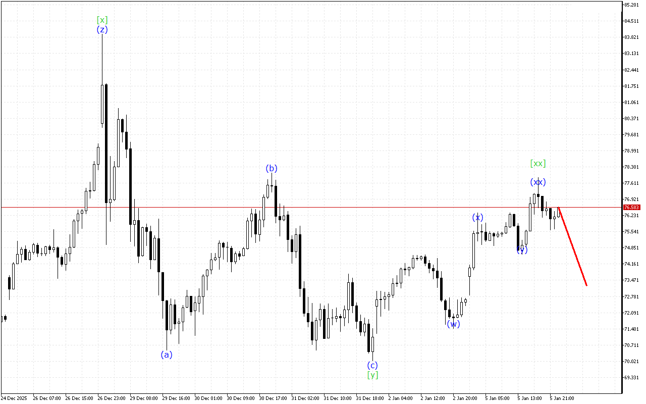 Μέσα σε μια κυματική δομή χαμηλότερου βαθμού, σημειώνεται η ανάπτυξη ενός τριπλού τριαριών. Ο σχηματισμός του κύματος (z) ολοκληρώνεται σε αυτή τη δομή. Σε αυτό το φόντο αναμένεται η ολοκλήρωση της διόρθωσης και η έναρξη μιας πιο κατευθυντικής κίνησης.