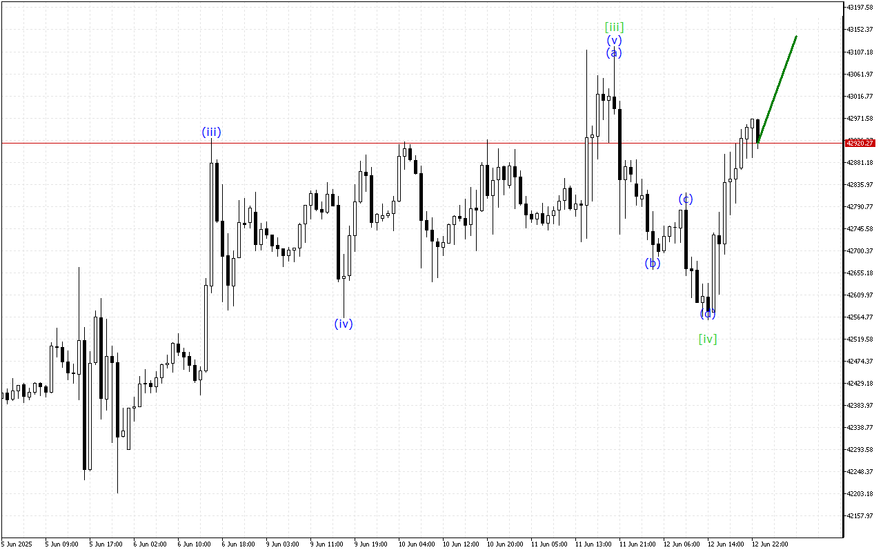 To summarize, at the moment the Dow Jones chart is maintaining a downward movement vector. However, the corrective wave is in the final stage of formation.
