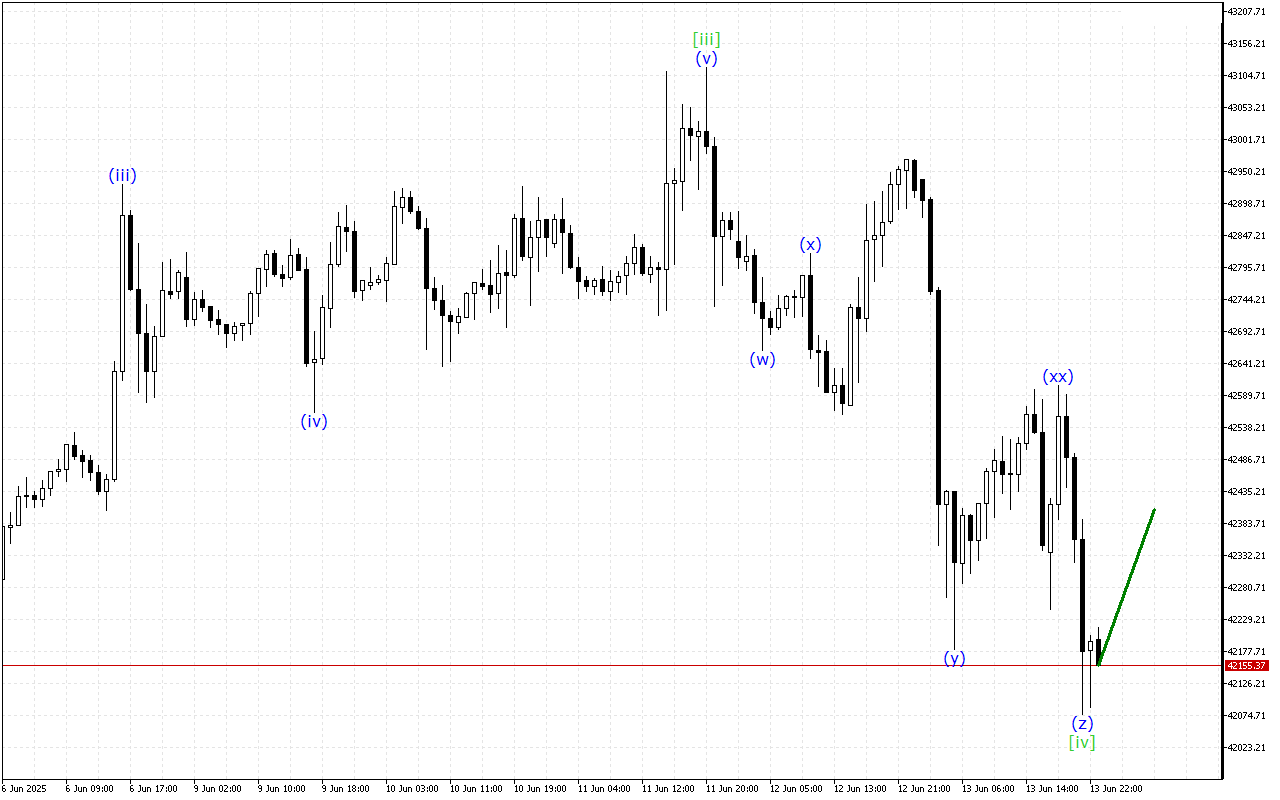 At a higher time interval, an ascending wedge continues to form. A downward corrective wave [iv] has been formed in this movement by this moment. Once this wave is completed, the formation of an upward wave [v] should be seen.