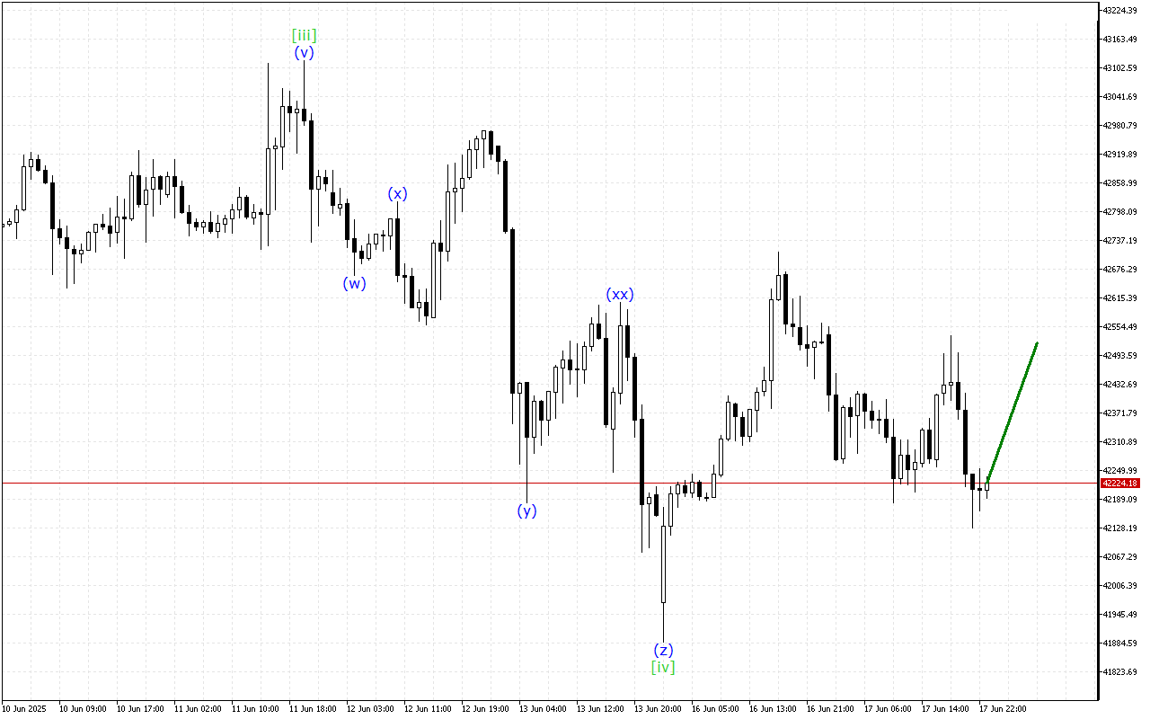 Despite the current downward movement on the Dow Jones chart, the situation may change soon. The corrective wave is close to completion, which may indicate the possibility of a price reversal.