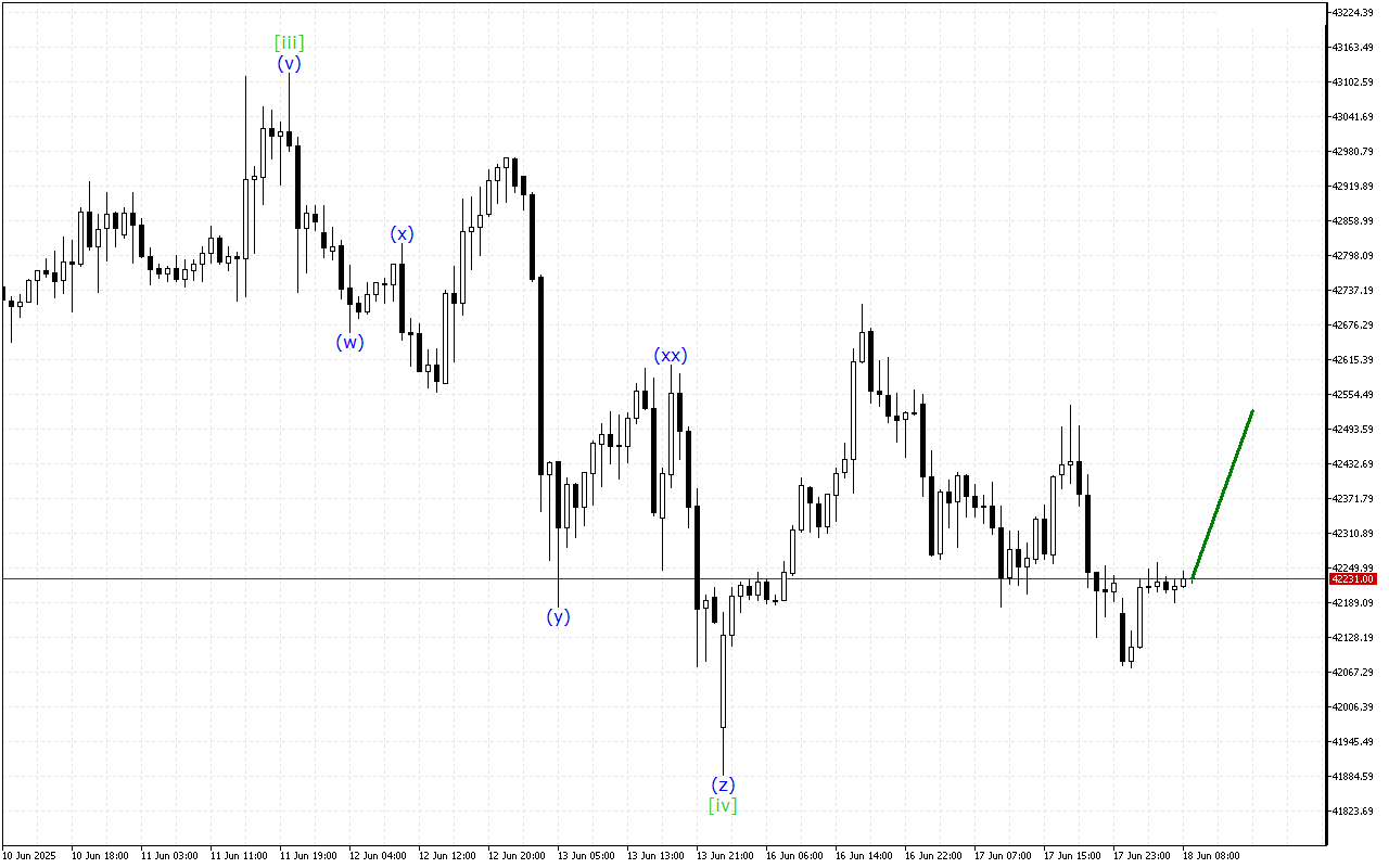 To summarize, at the moment the Dow Jones chart is maintaining a downward movement vector. However, the corrective wave is in the final stage of formation.