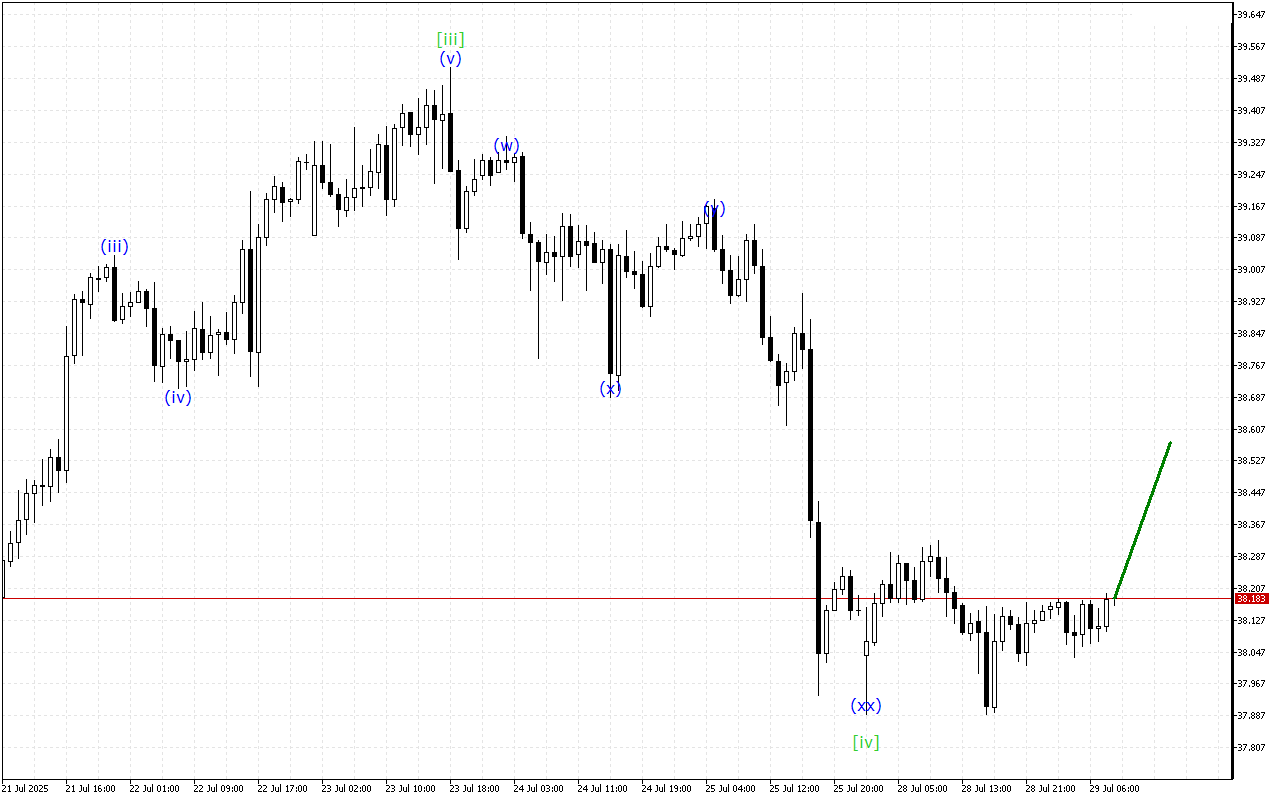 Waves of a lower time-frame form a triple three. The price is currently in the wave (z). When this wave is completed, a more directional price movement is expected.