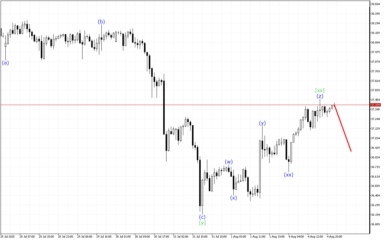 Waves of a lower time-frame form a triple three. The price is currently in the wave (z). When this wave is completed, a more directional price movement is expected.