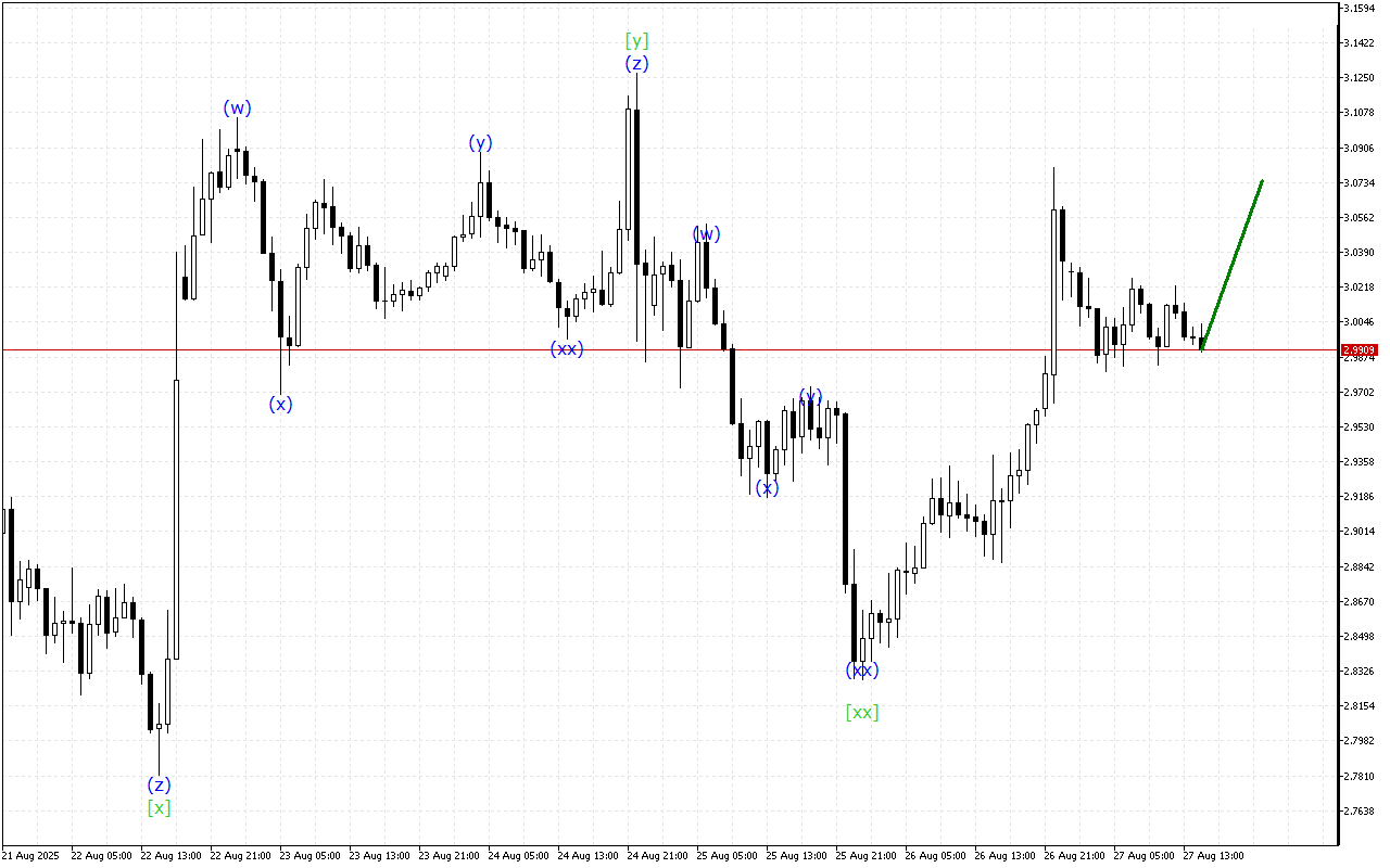 The medium-term movement vector of USDJPY indicates the formation of a Triple Three wave structure. Now the formation of the wave [xx] is completed and the beginning of an upward movement within the wave [z] is expected.