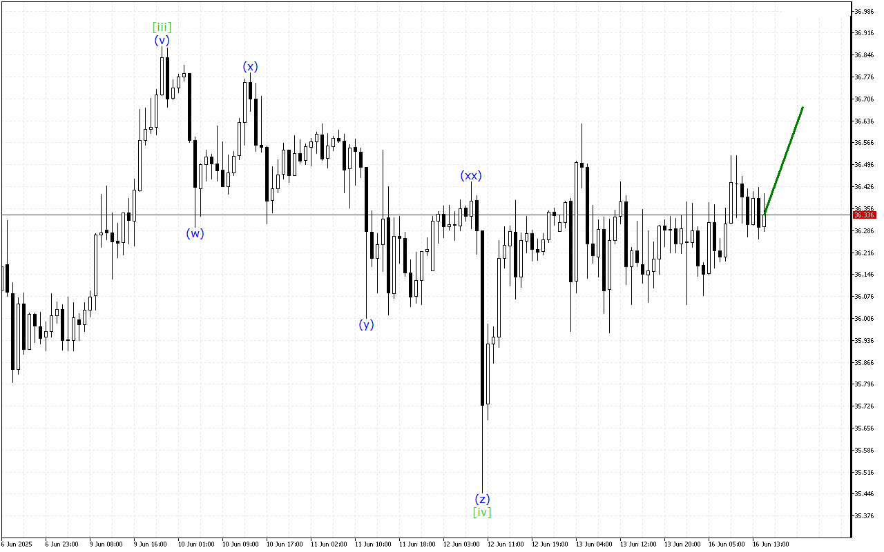 Waves of a lower time-frame form a triple three. The price is currently in the wave (z). When this wave is completed, a more directional price movement is expected.