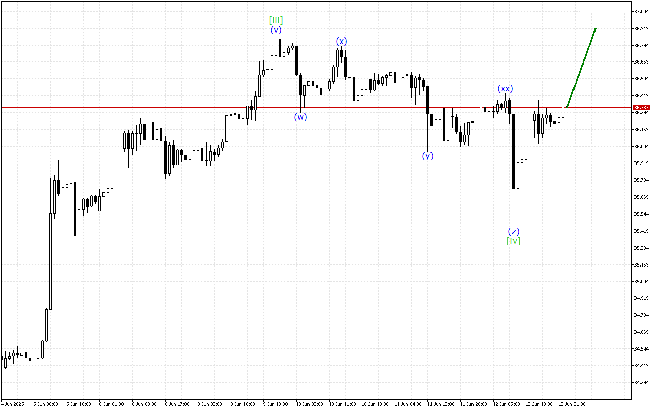 Waves of a lower time-frame form a triple three. The price is currently in the wave (z). When this wave is completed, a more directional price movement is expected.