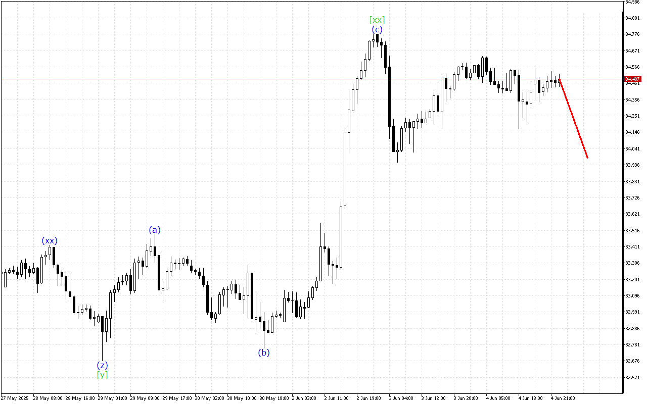 The current dynamics of the movement indicate the formation of a triple three. At the moment, the wave [xx] has been formed. After its formation the development of a downward wave [z] is expected.